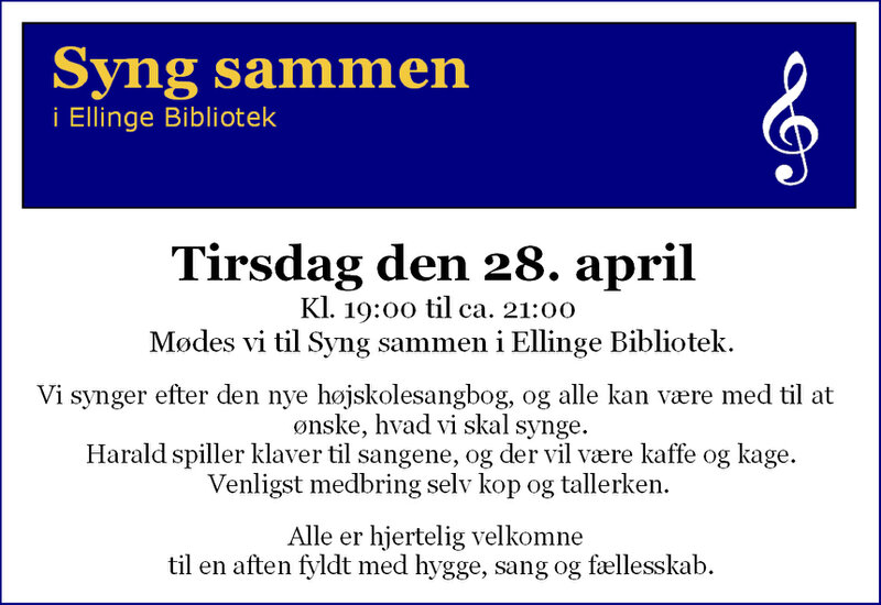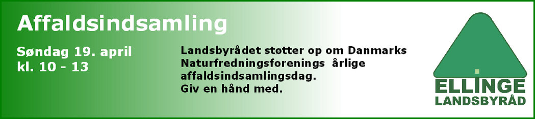Vi samles søndag den 19. april 2026 klokken 10.00 til affaldsindsamling i Ellinge by - og forventer at være færdig klokken 13.00. Efterfølgende vil Landsbyrådet være værter til en pølse og en sodavand. Affaldssække sponseres af Dansk Naturfredningsforening, så medbring bare dit gode humør og eventuelt engangshandsker. Vi har også enkelte affaldstænger. Det er hyggeligt, selvom det er affald, vi samles om! ;)