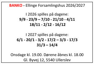 Datoerne for Banko i Ellinge Forsamlingshusfor sæsonen 2026/2027