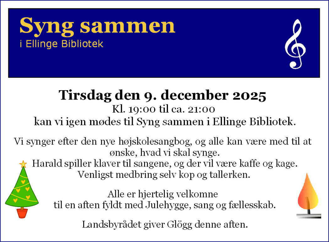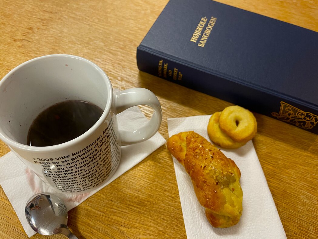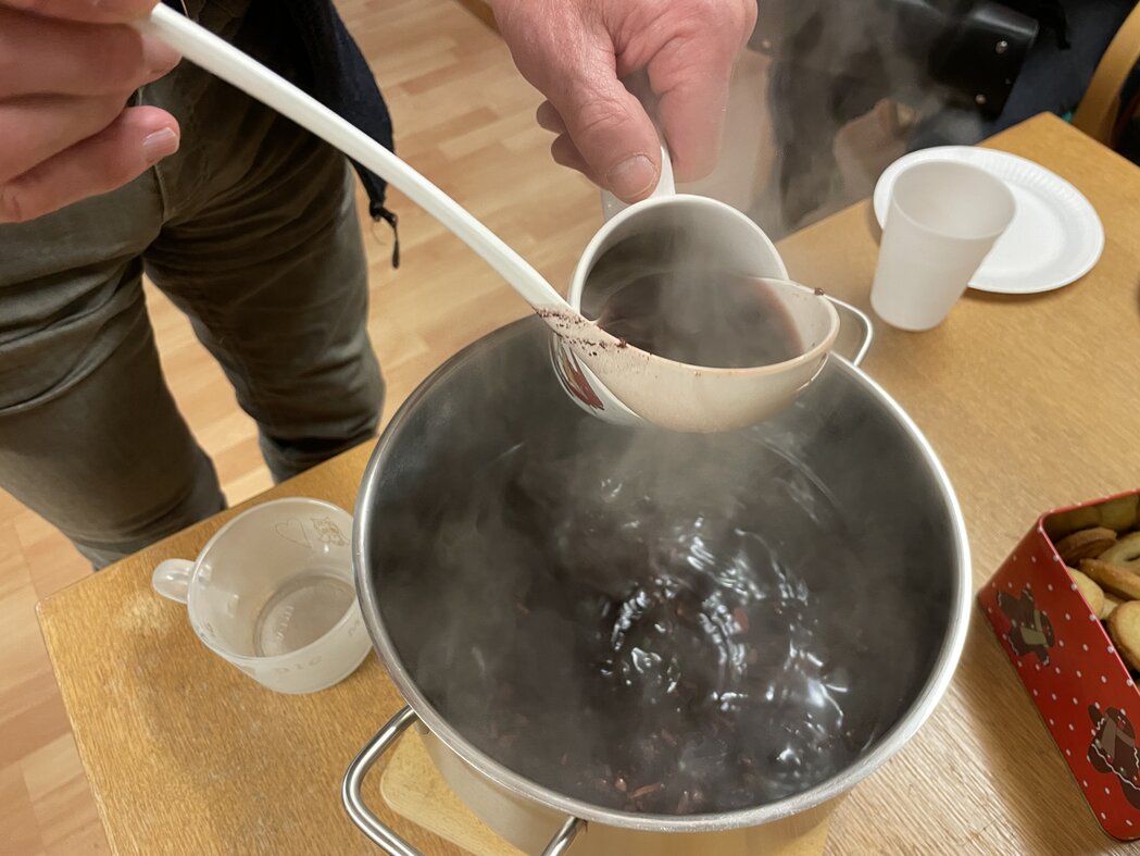 Bagefter er der gløgg og æbleskiver i Konfirmandhuset, og mens vi spiser og varmer os med gløgg og kaffe/the, synger vi et par julesange.