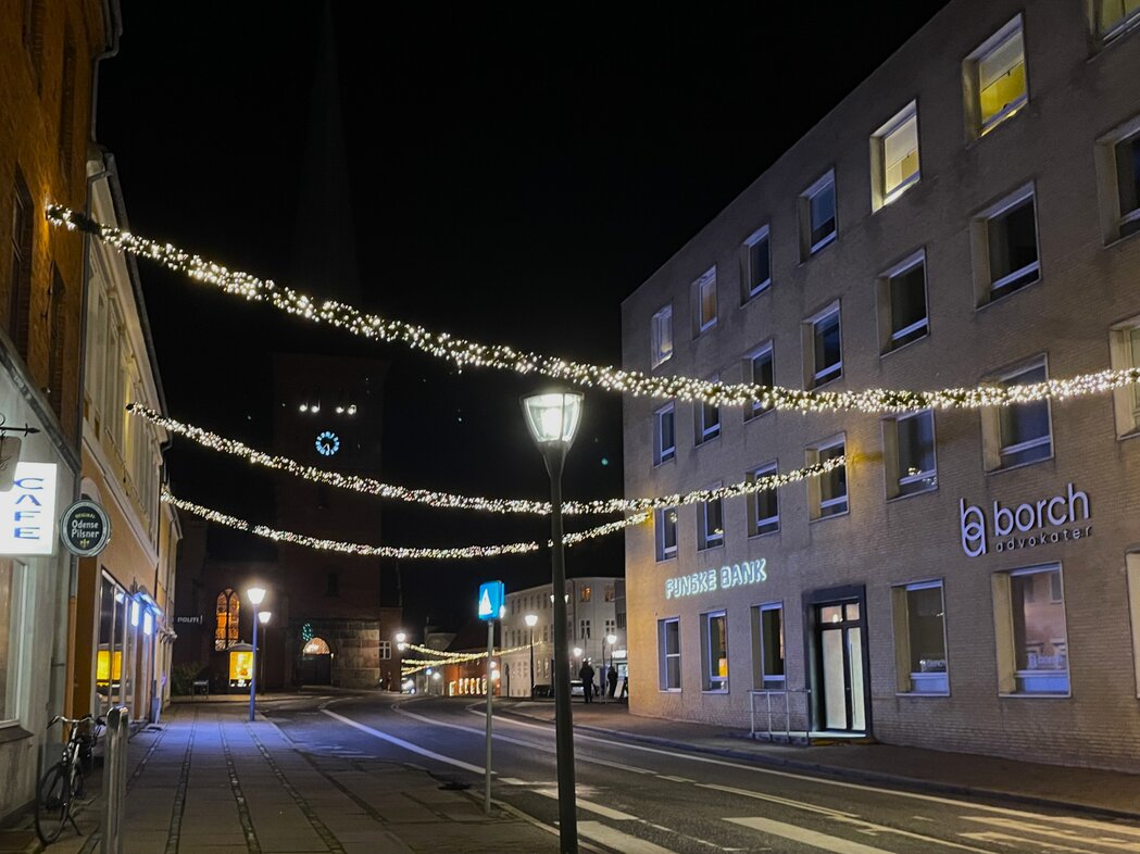 Der er Julet godt op i Nyborg - masser af lys alle steder.