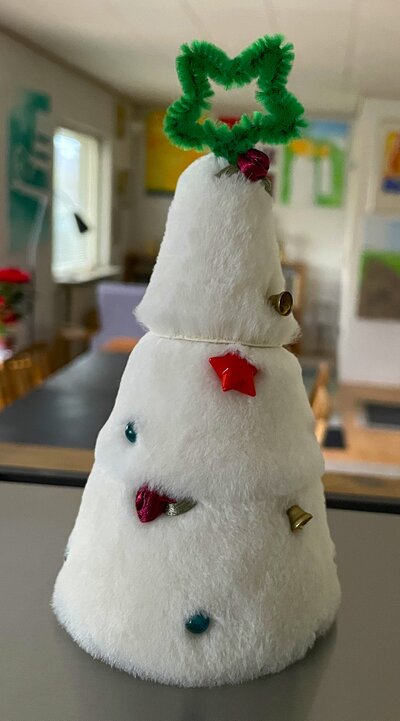 Jeg har stillet Juletræet op, og det er pyntet.Ddt tager ikke så meget plads, for det er kun 16 cm. højt.