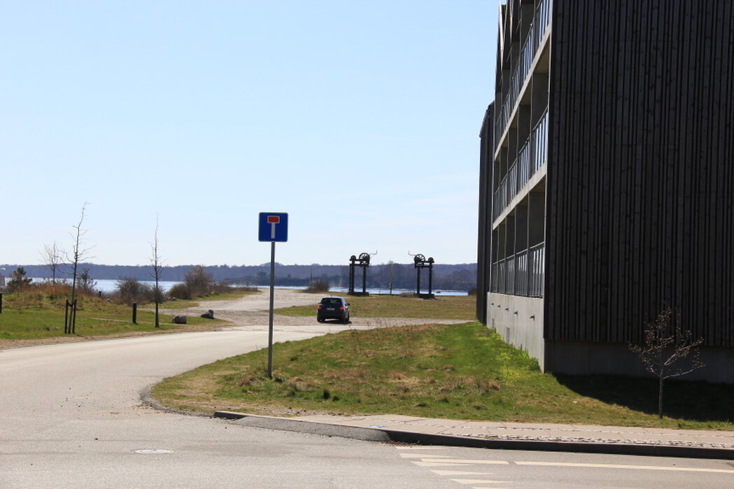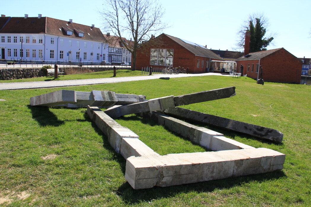 Det kunne ligne en ny skulptur på plænen foran Biblioteket i Nyborg.