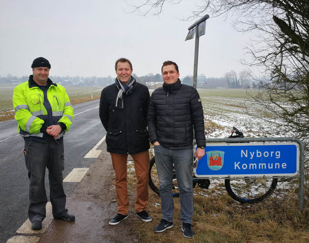 Stefan Jensen, Ulrik Pedersen og jeg holdt møde her til eftermiddag ved kommunegrænsen mellem Ellinge og Ferritslev med Borgmester Kenneth Muhs, hvor vi kunne kigge på kantbanerne i Faaborg-Midtfyn kommune, og de tilsvarende manglende i Nyborg kommune. Kenneth havde dog godt nyt med til os, og bakkede dagens artikel i Fyens Stiftstidende op, med samme nyhed. Nyborg vil nu finde midlerne til at lave kantbanerne mellem kommunegrænsen og Ellinge. Han var meget forstående over for behovet, og syntes klart at behovet var der for både unge og ældre, da vejen er smal og bilerne kører stærkt på strækningen.