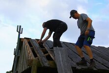 Tirsdag den 2. september 2025 begyndte arbejdet med at få lagt nyt tag på Bålhytten i Ellinge.