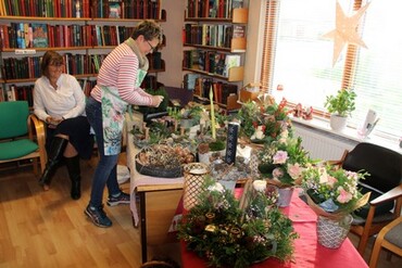 Indenfor udstillede Rikkes blomster og Benny deres altid flotte hjemmelavede kreationer.