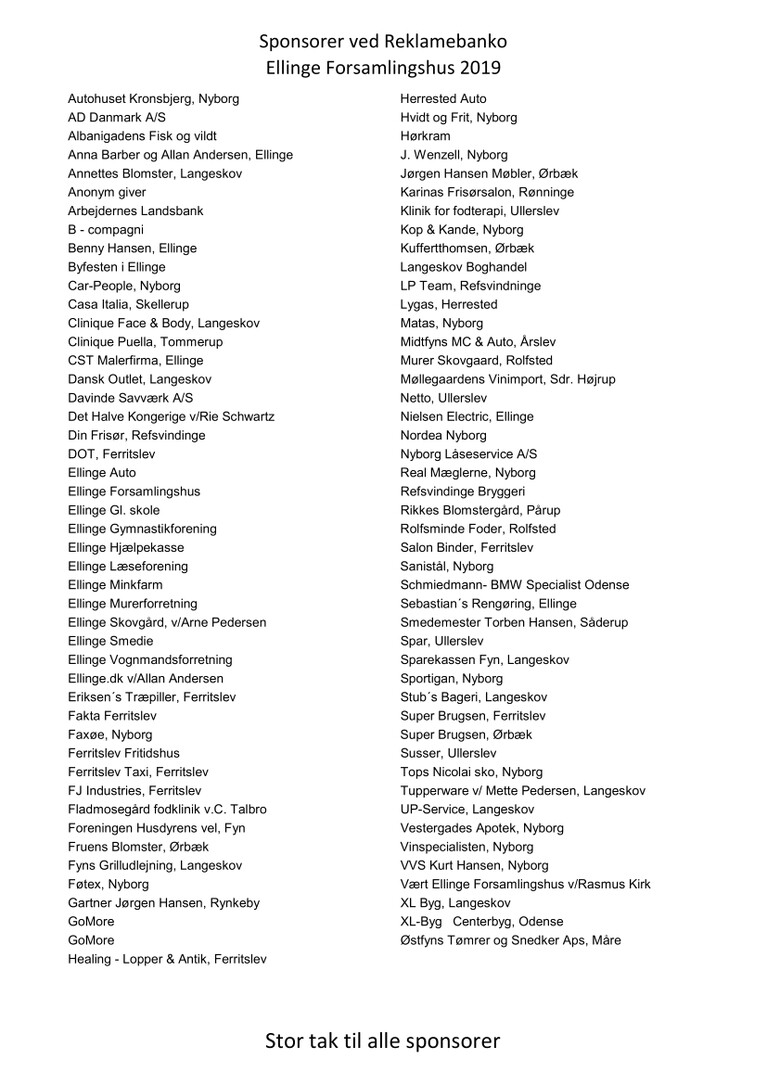 takker de 93 velvillige firmaer og private som