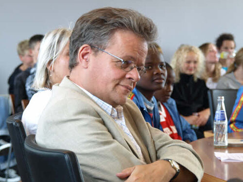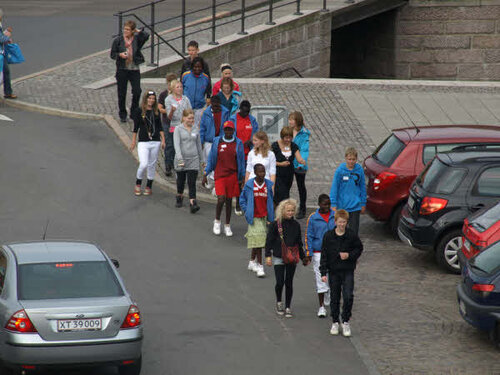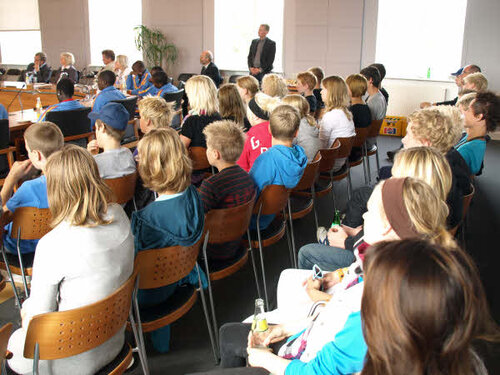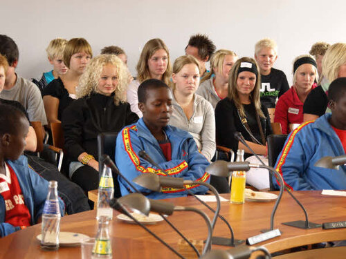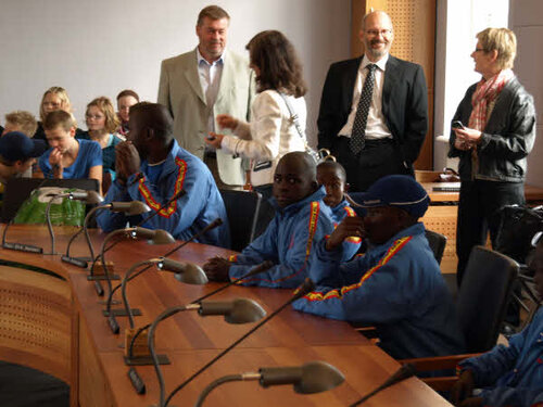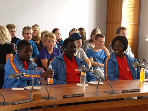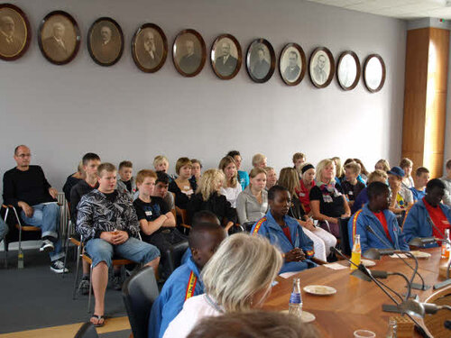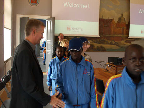 Monday the 7th September our guests from Uganda were welcomed at the town hall in Nyborg. In the pictures you can see that our guests were given the seats of honour in the council chamber. There were representatives from the town councillor, Unicef, Danish School Athletics, host classes of the schools in Ørbæk and Skellerup, their leaders, teachers, and parents.