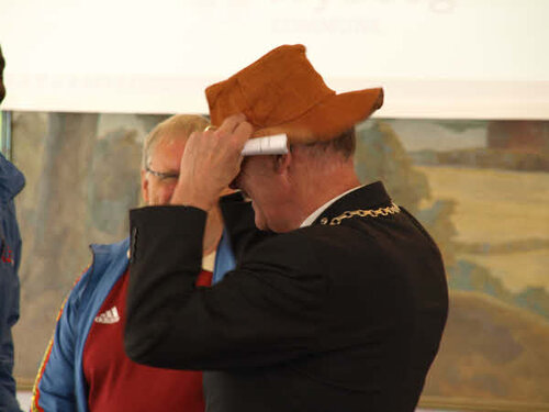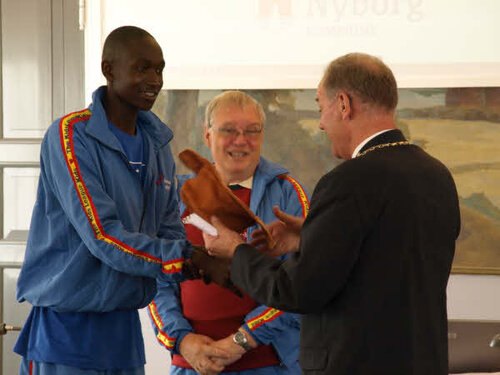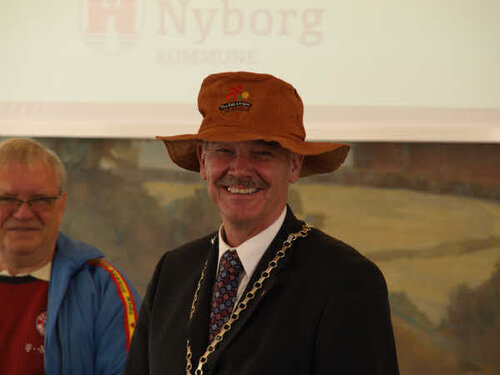 Trevor finished by presenting a hat made of fibre wood to the mayor Jørgen Terndrup.